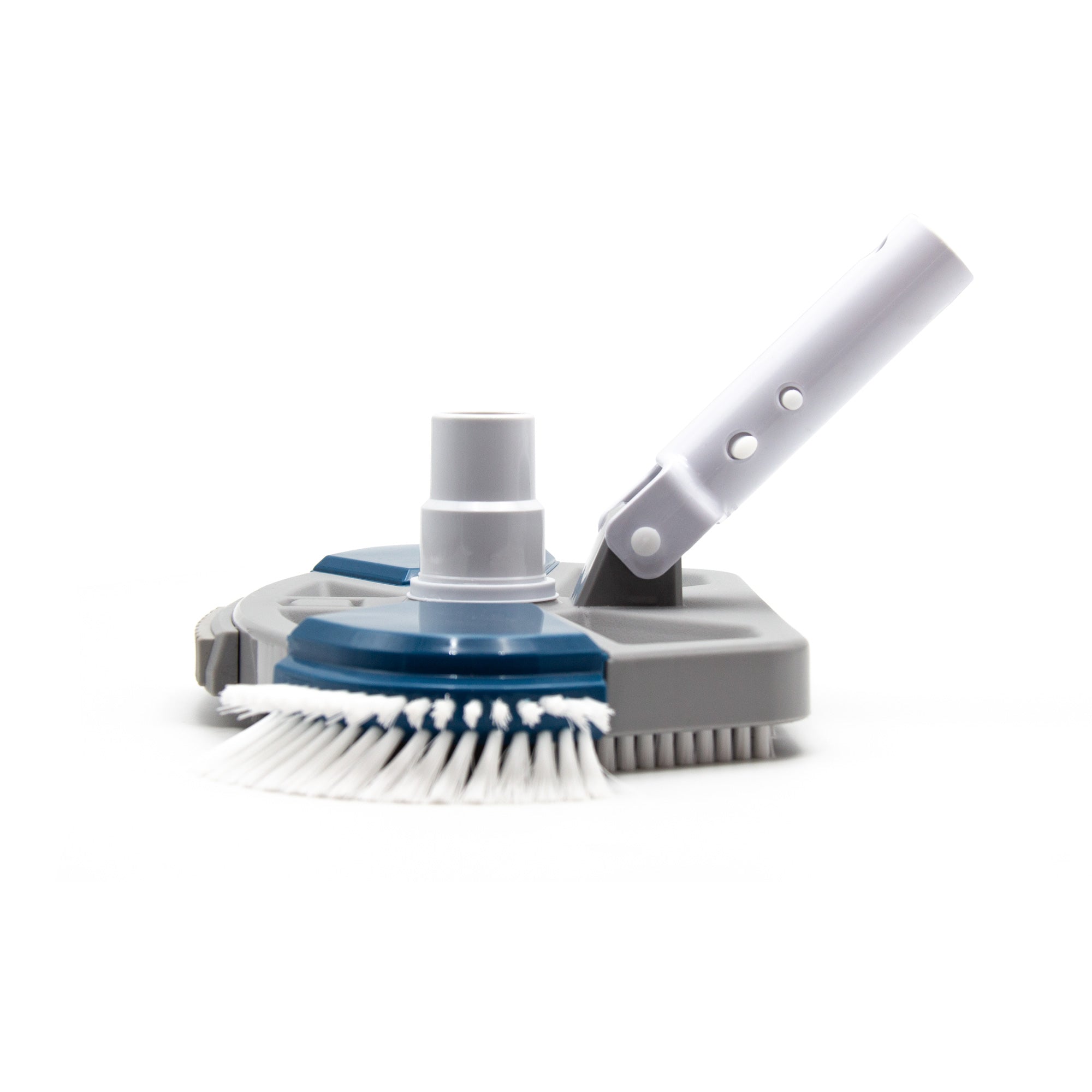 Die schwere Ausführung sorgt dafür, dass der Bodensauger stabil auf dem Untergrund aufliegt und sich leicht führen lässt. Über die Press-Clip-Halterung kann er schnell an alle gängigen Teleskopstangen befestigt werden. Der Anschluss erfolgt flexibel über 32 mm oder 38 mm Schwimmbadschläuche.