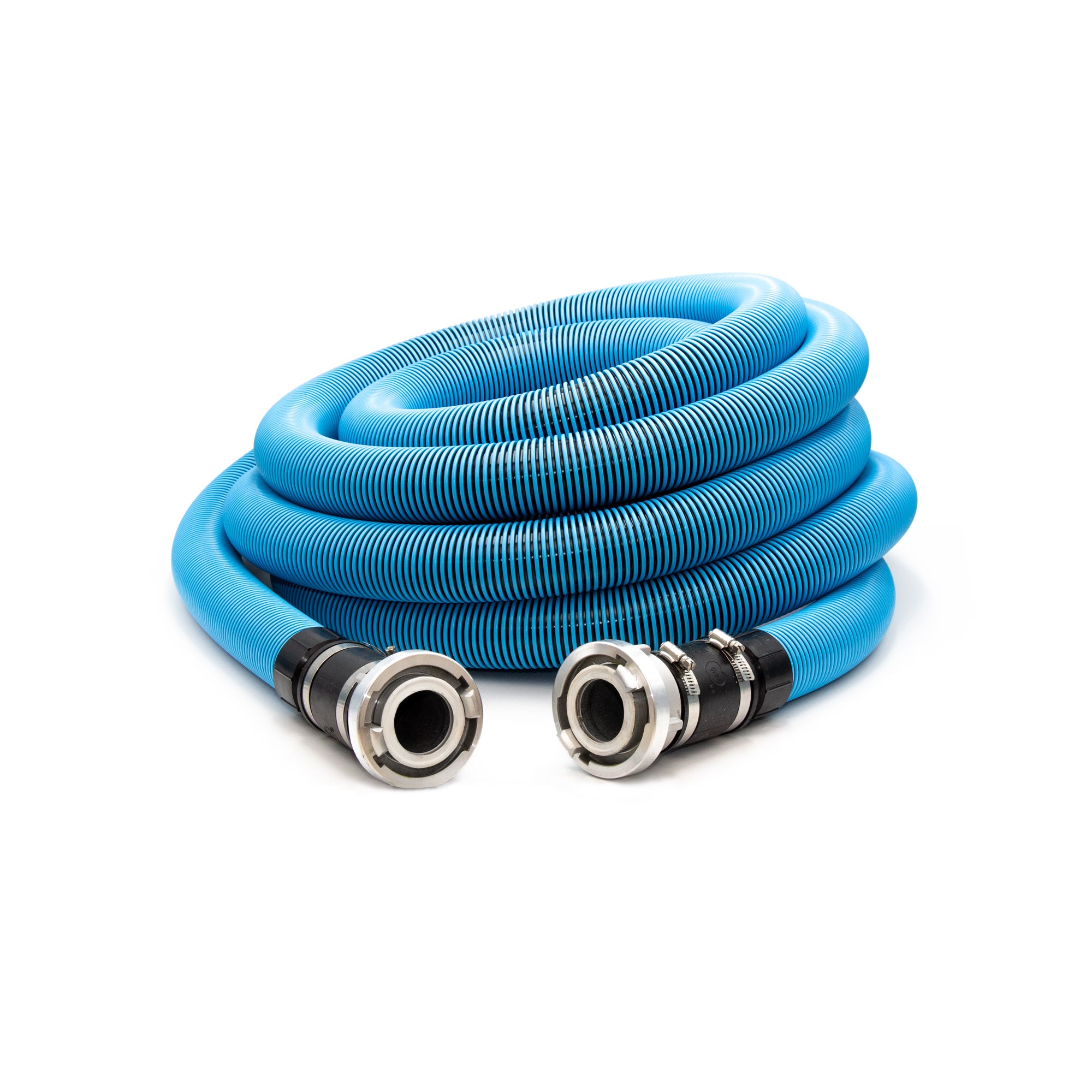 Hinweis: In der Praxis wird der 50-mm-Schlauch hauptsächlich im Ansaugbereich bis zum Vorfilter verwendet, um möglichst hohe Fördermengen und einen stabilen Durchfluss zu gewährleisten. Nach dem Vorfilter sind grobe Feststoffe zuverlässig abgeschieden, sodass der Abtransport des Wassers effizient über D38-Schläuche erfolgen kann.