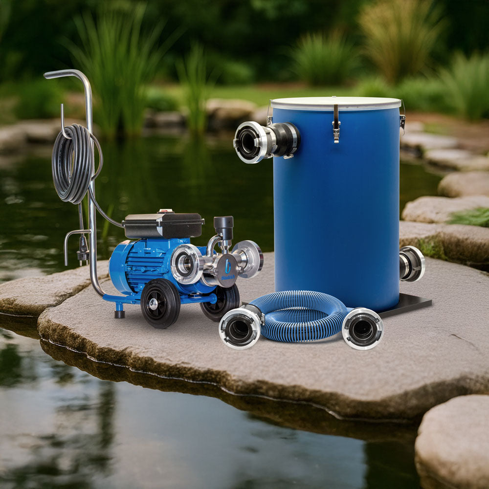 Dank des Vorfilters XXL eignet sich das PRO Set auch für Teiche, bei denen bei einer Reinigung größere Schmutzmengen anfallen, ohne dass der Arbeitsfluss ständig unterbrochen werden muss. Gleichzeitig bleibt das System kompakt und flexibel genug, um auch in verwinkelten oder schwer zugänglichen Bereichen eingesetzt zu werden.