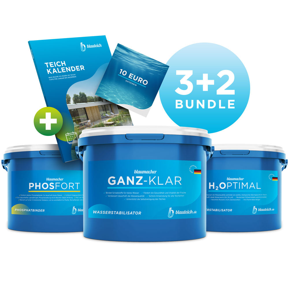 Das Wasserklar-Set ist eine abgestimmte Systemlösung für klares, stabiles und biologisch ausgewogenes Teichwasser. Im Zentrum steht GANZ-KLAR zur sichtbaren Bindung von Schwebstoffen und Schwebealgen. Ergänzt wird das Set durch PHOSFORT zur dauerhaften Phosphatreduzierung und H₂OPTIMAL zur Stabilisierung der Wasserwerte und Unterstützung der Teichbiologie. Für nachhaltige Klarheit ohne chemische Zusätze.