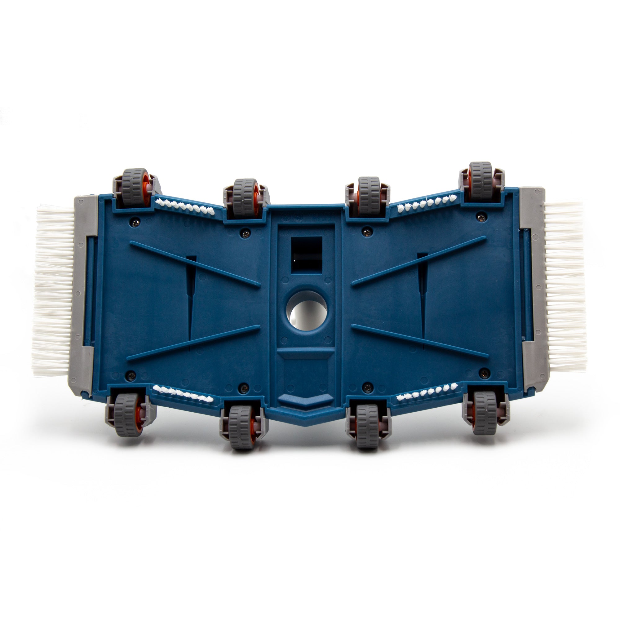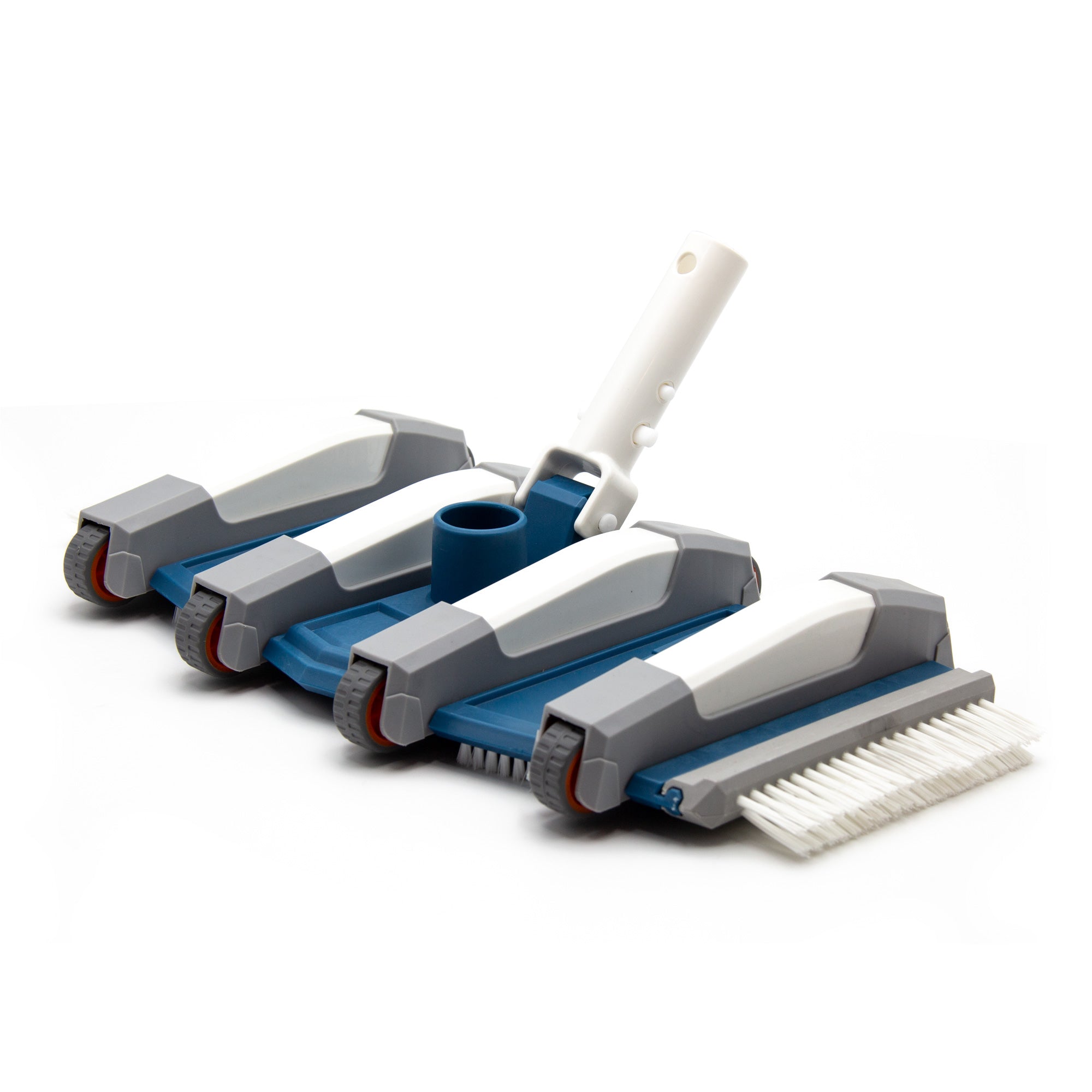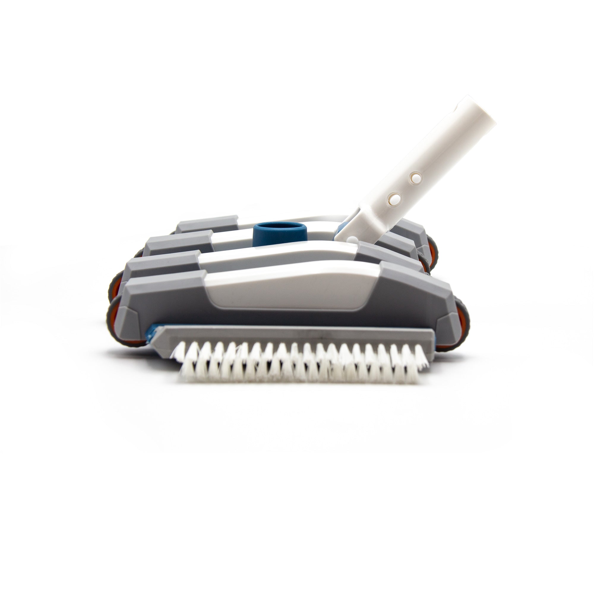 Für den Einsatz in Naturteichen lassen sich die seitlichen Borsten bei Bedarf entfernen, um unnötiges Aufwirbeln von Mulm zu vermeiden. Der Bodensauger verfügt über einen 38-mm-Schlauchanschluss und ist kompatibel mit allen Pool- und Teleskopstangen.