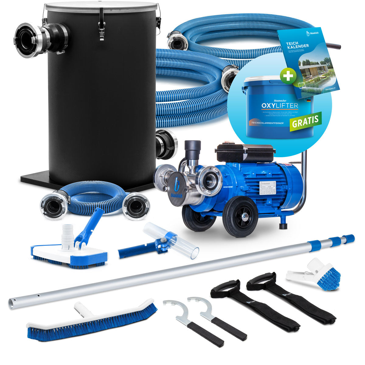 Alle Komponenten der Komplettsets sind optimal aufeinander abgestimmt: Vorfilter, knicksichere Schläuche, Teleskopstange, passende Düsen und alle nötigen Adapter. Kein Improvisieren, kein Nachkaufen, kein Aufwand. Sie packen aus, schließen an und starten direkt – exakt die Zuverlässigkeit, die anspruchsvolle Teichbesitzer erwarten.